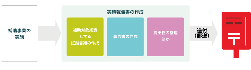 ※送付(提出)には期限(締切日)がありますので、事業終了の前から、可能な範囲で、証拠書類の整理・作成等の準備を進めてください。
